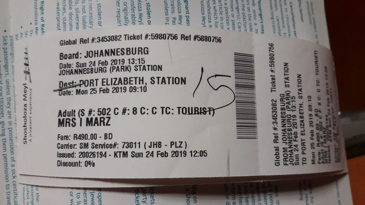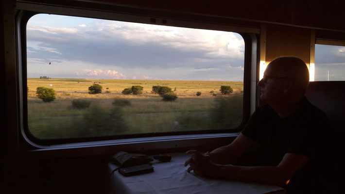 Mit dem Zug durch Südafrika, von Johannesburg nach Port Elizabeth, 1100 Kilometer, 20 Stunden - laut Plan. Manche halten uns für bekloppt.