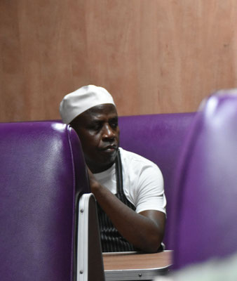 Johannesburg-Melville, unser Tisch in der kleinen Tapasbar, von außen: