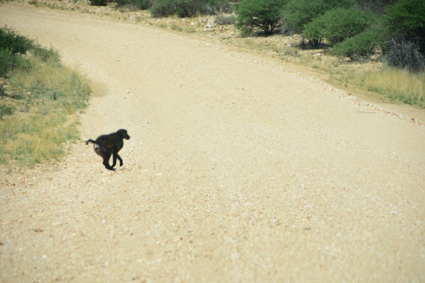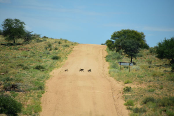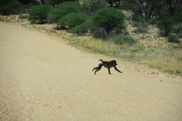 Da ist sie wieder - unsere liebgewonnene Einsamkeit. Nur wenige Kilometer von Windhoek entfernt ist es menschenleer. Herr Hakuna Matata schaukelt uns gemütlich durch die Landschaft. Lediglich mehrere Affenbanden begegnen uns.