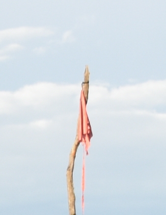 Selbst die Flagge ist vom letzten Sturm zerfetzt. Hannes hat eine neue bestellt und will sie nächste Woche vorbeibringen. Er scherzt, dass es dann natürlich eine namibische Flagge in Angola gebe.