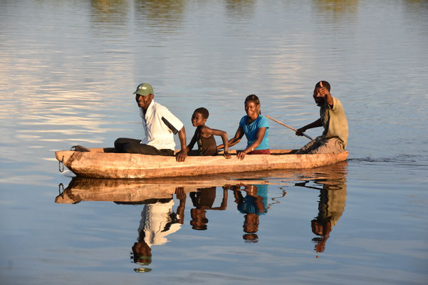 Als er uns anbietet, ihn zu einer Bootstour zu begleiten, zögern wir nicht. Er habe Feldwerkzeug für Bekannte geschliffen und wolle ihnen dies bringen.
