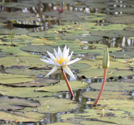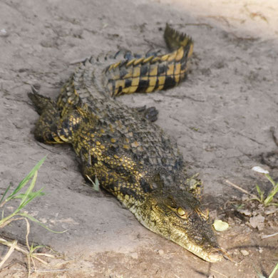 Unterwegs zeigt er uns ein Babykrokodil und unzählige Wasservögel.
