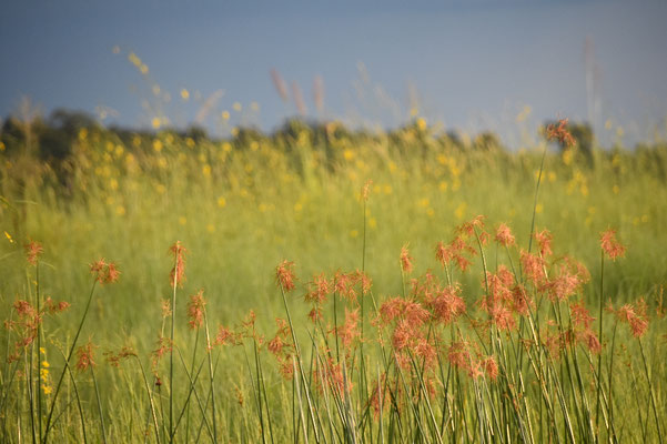 Manchmal schüttet es wie aus Eimern, es gibt aber traumhafte Sonnenaufgänge und das große Blühen beginnt: Regenzeit am Chobe-River im äußersten Nordosten Namibias.