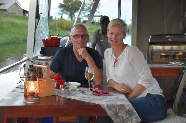 Und so schippern wir bei leckerem Essen in den Sonnenuntergang:
