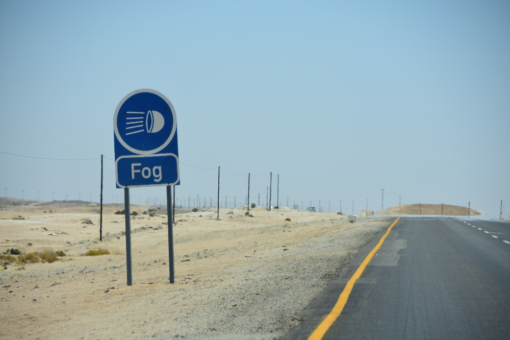 Selbst das Wetter spielt zumindest am Morgen mit, denn da gibt es fast immer Nebel, vor dem schon bei der Anfahrt aus der Wüste gewarnt wird: