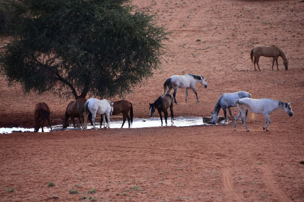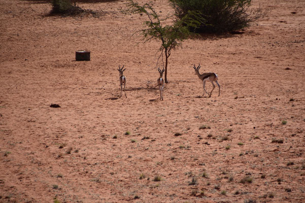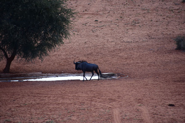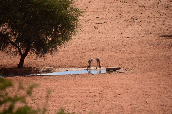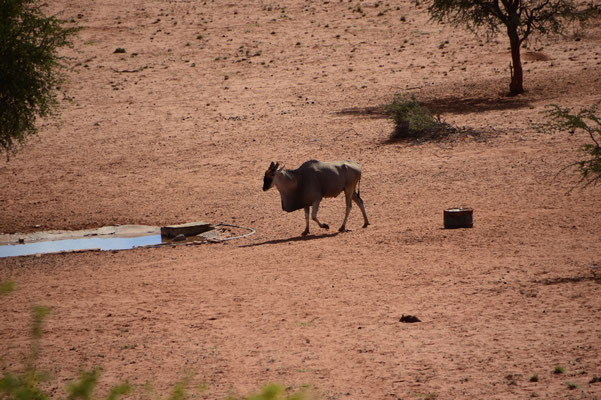 Die Stille ist kaum zu beschreiben und nicht weit entfernt ist ein Wasserloch. Als unter anderem auch ein Teil der Speisekarte der letzten Tage an uns vorbei läuft, beschleicht uns doch irgendwie ein schlechtes Gewissen...