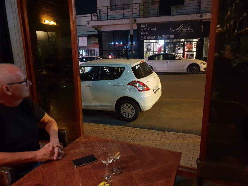 Johannesburg-Melville, unser Tisch in der kleinen Tapasbar, von außen: