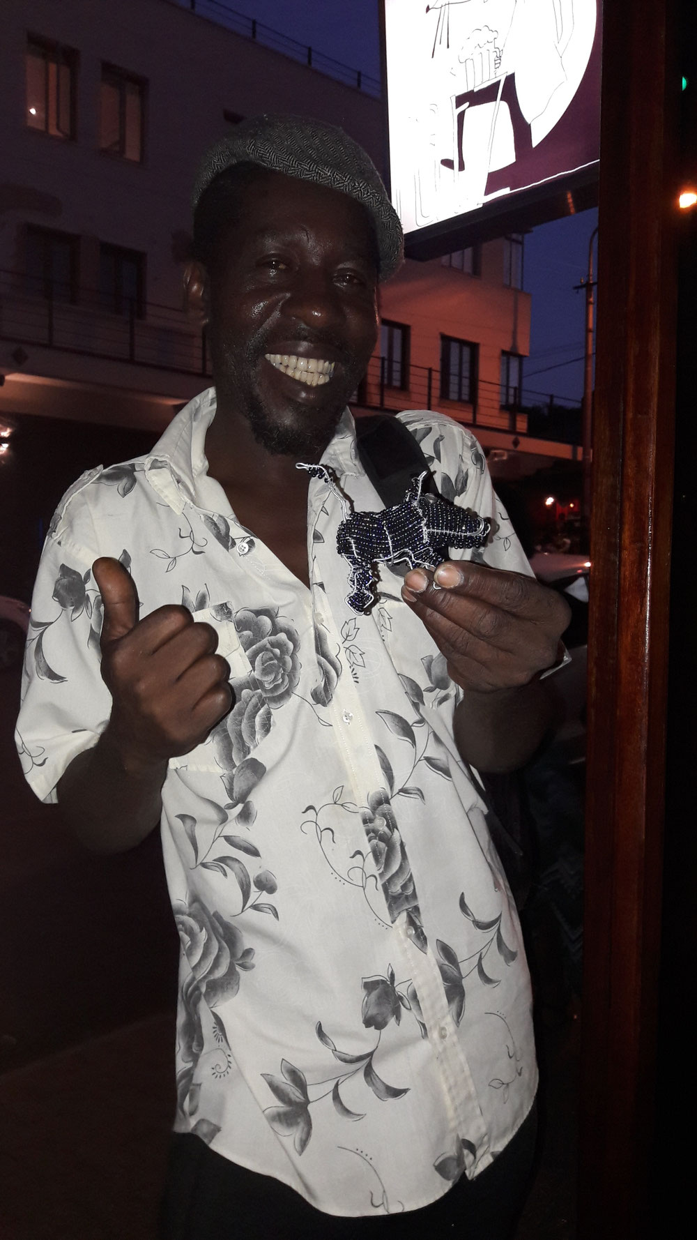 ..David hat rosa Flamingos im Angebot, unser Einwand, diese seien nicht transportierbar, wird mit einer Flamingo-Klapp-Präsentation gekontert...wir bleiben "hart"...