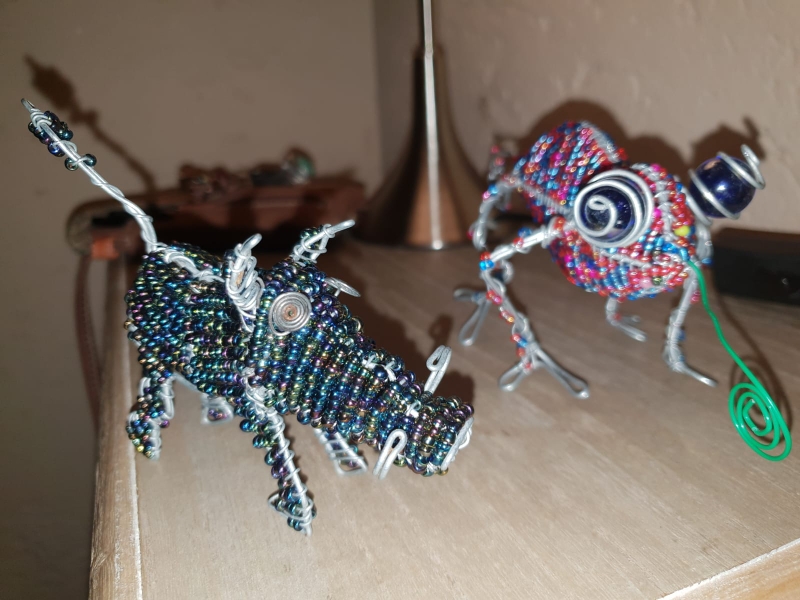 ...und haben fortan zwei weitere Reisebegleiter: Curt, das Chamäleon und Warzenschwein Waltraud, aber keine rosa Flamingos!