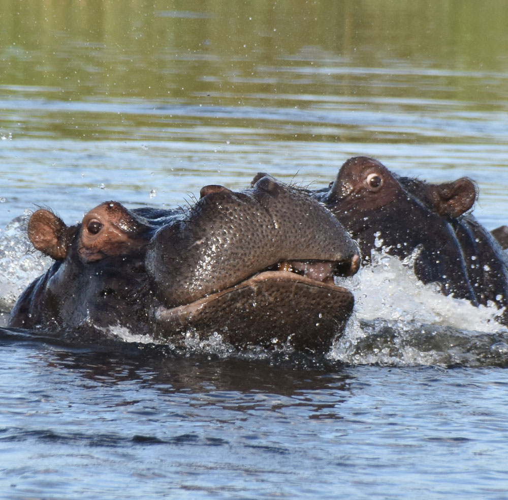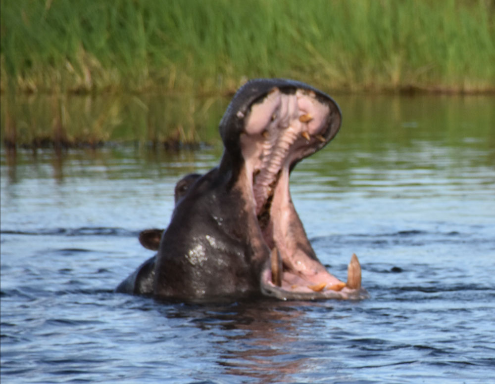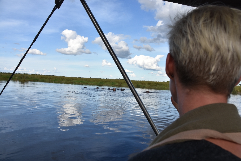 Auf unsere Frage an Camp-Besitzer Hennie, wo die Hippos denn seien, schlägt uns dieser eine Bootstour vor (also zum Glück mit dem Motorboot links):