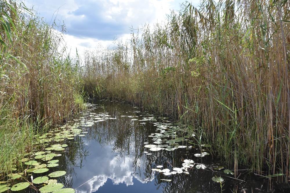 Wir fahren durch kleine Kanäle im Schilf: