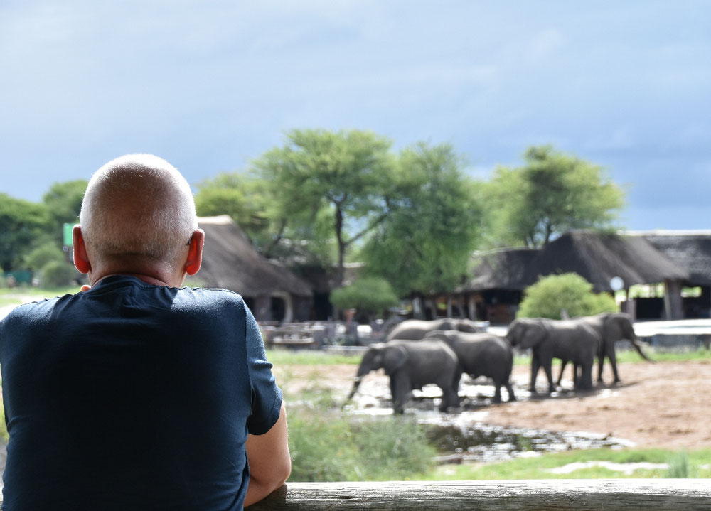 Elephant Sands - unsere erste Station in Botsuana: Der Name ist Programm. Die Elefanten kommen wirklich mitten ins Camp: