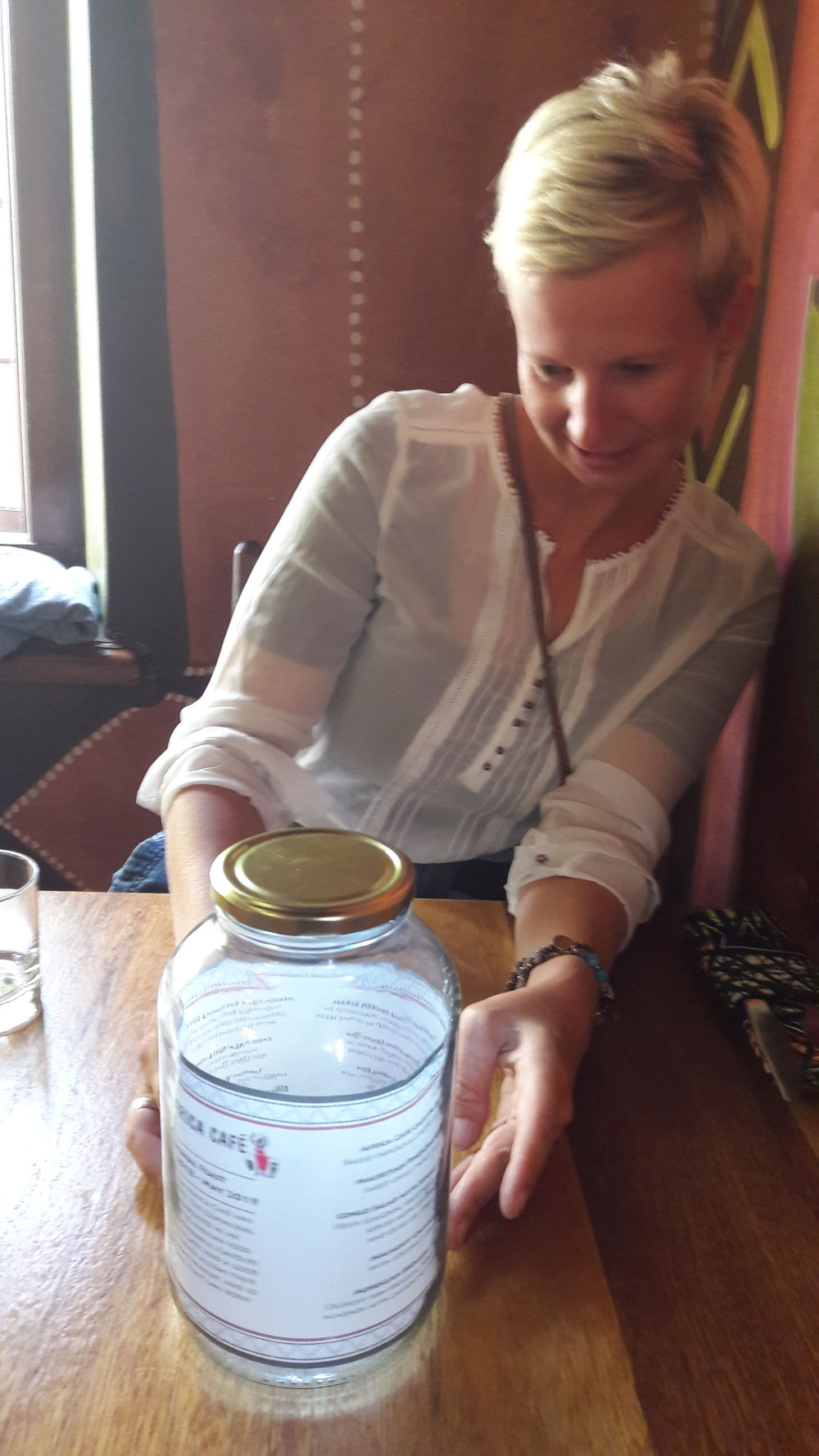 Im Café Africa wird erst mal die auf einem Einmachglas befindliche Speisekarte studiert...