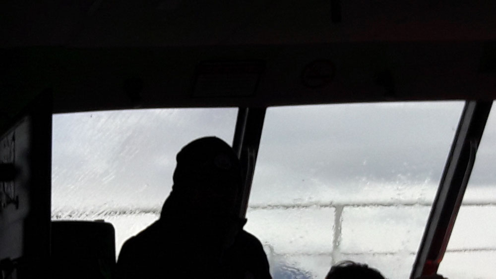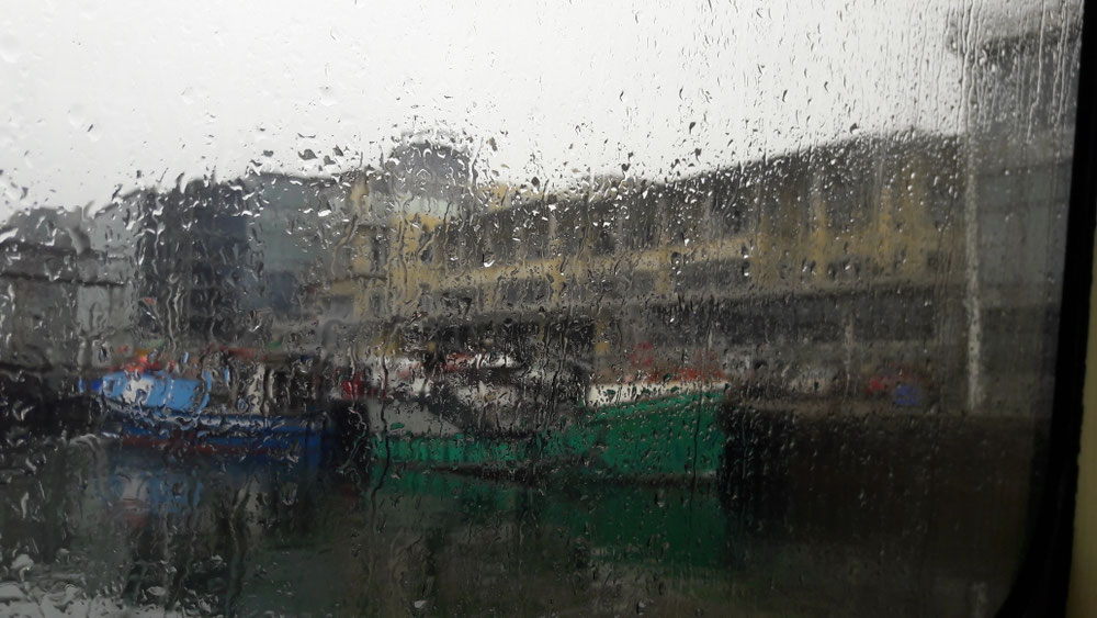 Als die ersten Passgiere grün im Gesicht werden und ein Schiffsoffizier nach beruhigenden Worten sucht, bekommen wir ernsthafte Bedenken und sind am Ende sehr froh über festen Boden unter den Füßen.