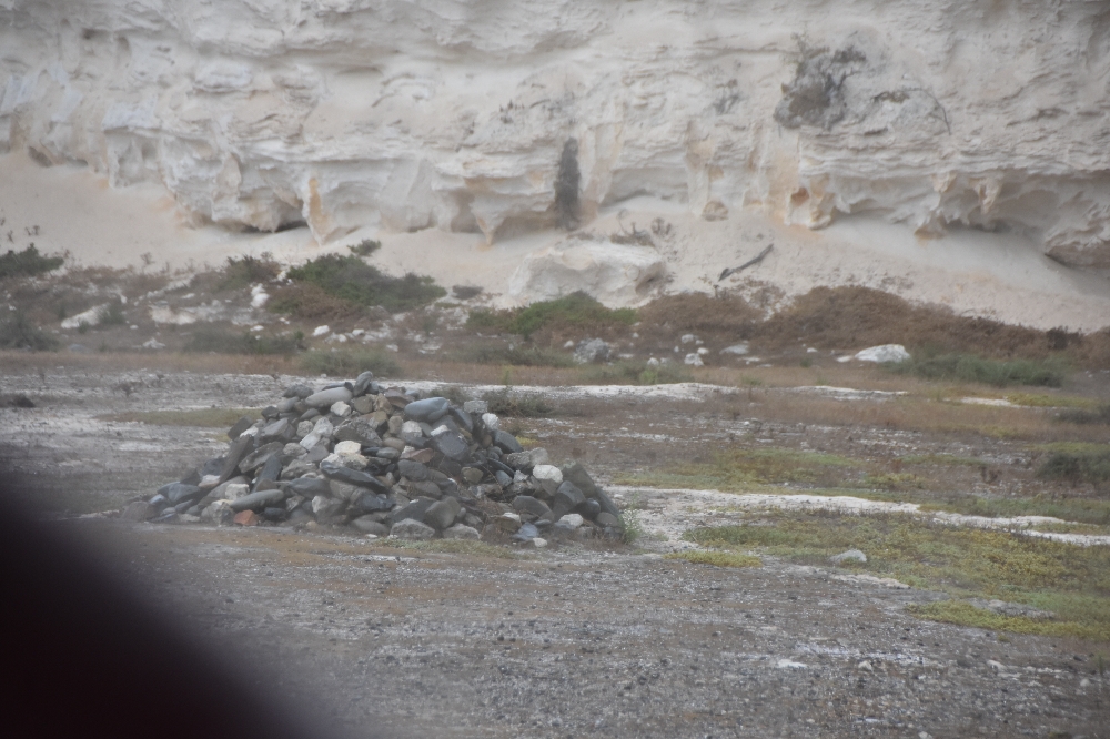In diesem Steinbruch mussten die Gefangenen "arbeiten". Der Steinhaufen wurde zum Gedenken von Überlebenden nach der Befreiung aufgehäuft, der innerste Stein stammt von Mandela selbst und symbolisiert den Neuaufbau Südafrikas.