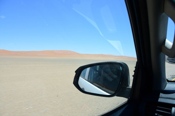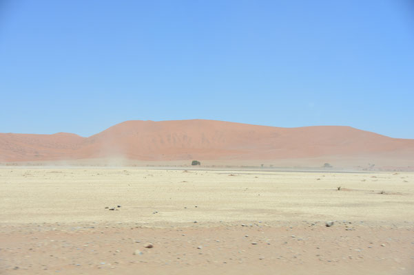 Und dann sehen wir sie: die Dünen von Sossusvlei, wir sind in der Namib: