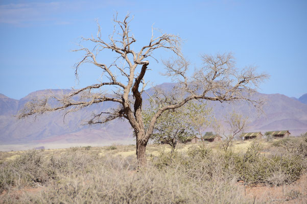 Staubtrocken, seit November kein Regen, trotz Regenzeit und dennoch gilt die Kalahari offiziell nicht als Wüste. Wir verlassen sie in Richtung Namib und fragen uns, was uns in dieser "richtigen" Wüste erwartet. Aber zuerst wirkt es wieder sehr deutsch: