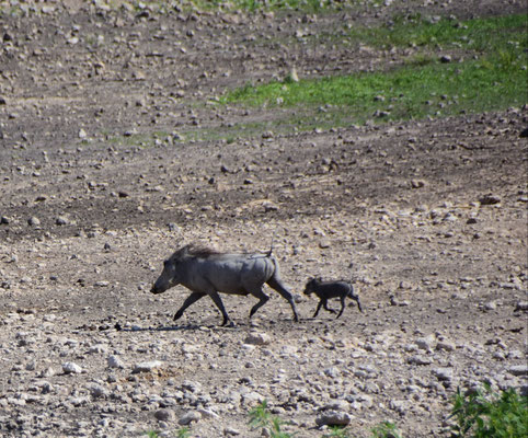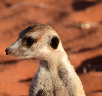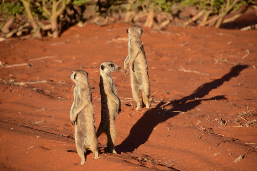 Sie sind unglaublich putzig und verbreiten eine ziemliche Hektik in der sonst so ruhigen Morgensonne. Zu unserer Überraschung sind die kleinen Erdmännchen gar nicht scheu und sehr neugierig. Zwischen 6 und 7 Uhr ist die Sonne für Mensch und Tier noch erträglich.
