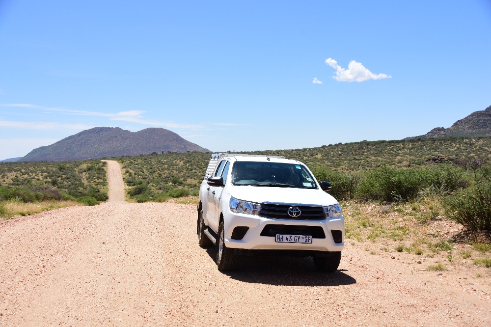 Die meisten Straßen Namibias würden in Deutschland gerade so als Feldwege durchgehen: nicht geteert, oft Wellblechoberfläche und viele Schlaglöcher, deshalb haben wir Herrn Hakuna Matata.