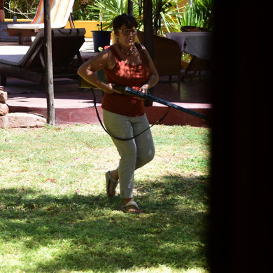 Ein Schrei : Schlangenalarm. Wir werden sofort in unsere Hütte geschickt, die Hunde werden weg gejagt. Farmerin Jutta greift zur Flinte, Immanuel und Enginie bewaffnen sich mit Stöcken. Kurze Zeit später ist die Baumschlange tot. Erschlagen. Die Zweite an diesem Vormittag....