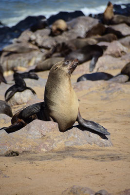 Wir fahren an der Skelettküste entlang Richtung Cape Cross. Dort erwartet uns eine unvorstellbar riesige Robbenkolonie.
