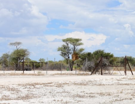 Es gibt aber auch solche, die bei schlechter Laune oder großem Hunger recht ungemütlich werden können. Deshalb gibt es hier solche Käfige, nicht für die Tiere, sondern für uns. Nur in so gesicherten "Rastplätzen" dürfen wir das Auto verlassen: