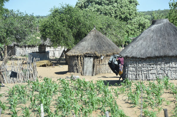 Caprivi gilt als der ursprünglichste Teil Namibias. Auf der Herfahrt sehen wir viele San-Dörfer.