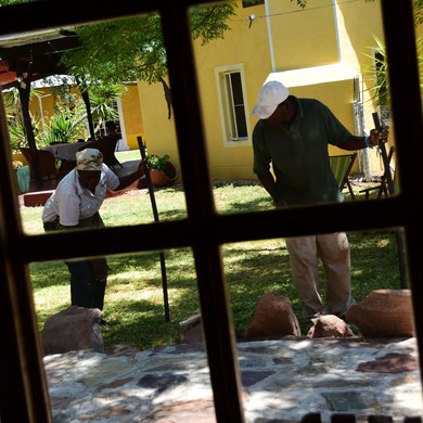 Ein Schrei : Schlangenalarm. Wir werden sofort in unsere Hütte geschickt, die Hunde werden weg gejagt. Farmerin Jutta greift zur Flinte, Immanuel und Enginie bewaffnen sich mit Stöcken. Kurze Zeit später ist die Baumschlange tot. Erschlagen. Die Zweite an diesem Vormittag....