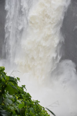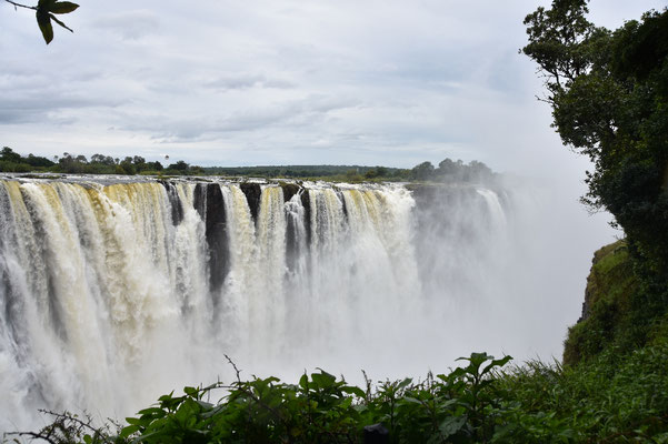 Nach zwei Grenzübertritten, vier Stempeln, unendlich vielen Listen und Formularen, jeder Menge Gebühren für dies und das und einige Dollar "Servicegebühren" später haben wir es geschafft. Der Sprühnebel kriecht bis unter die Haut und der Donner ist laut zu hören: Wir sind an den Victoria Fällen in Simbabwe! Und jetzt hängen wir uns mal zum trocknen auf.