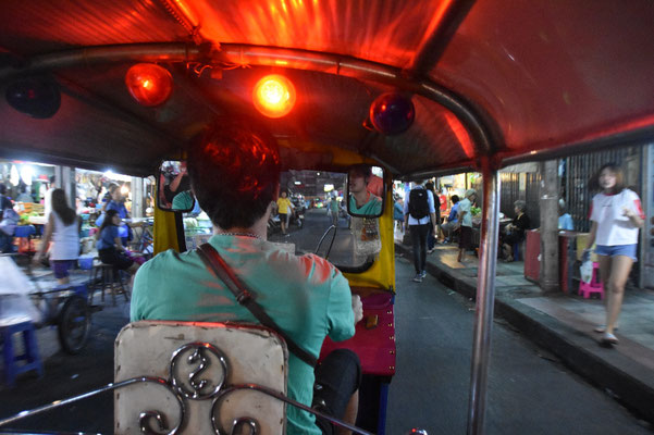 Wir waren tatsächlich nur eine Nacht hier: Wenn einem ein thailändischer Ladyboy in chinesischem Kleid karibische Cocktails bei amerikanischer Jazzmusik in britischen Chesterfieldsesseln serviert, während die zentralafrikanischen Tischnachbarn australischen Wein trinken - dann ist man wohl in Bangkok. Hier scheint sich die Welt zu treffen. Genauer gesagt sind wir in Chinatown.