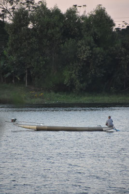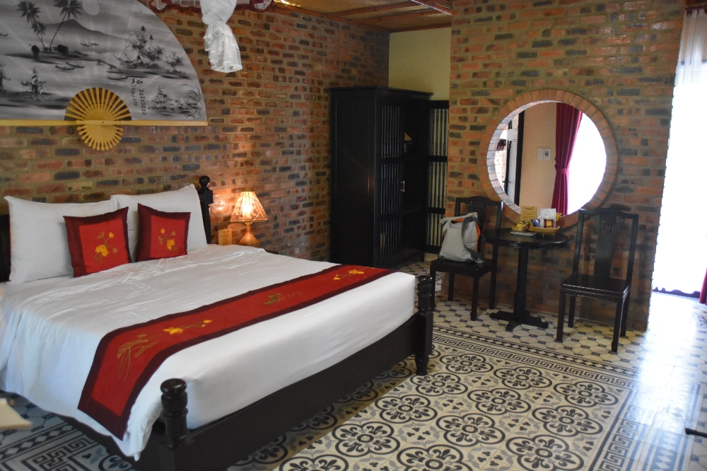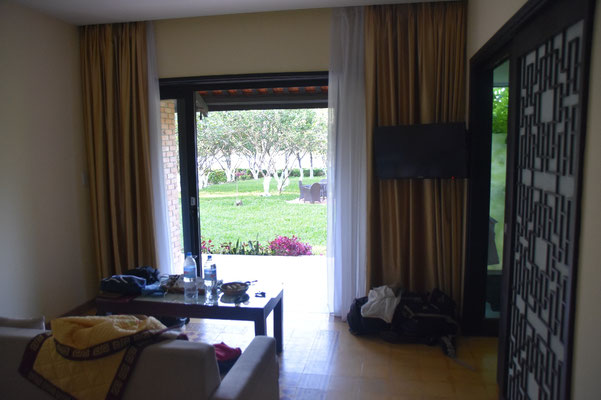 Ein Ort zum entspannen. Wäre da nicht die Maus... Tiere gehören in einer Ecolodge dazu. Wir bestaunen die Geckos und erfreuen uns an riesigen Schmetterlingen. Doch dann fällt der Strom aus. Nur in unserer Hütte. Ein Verdächtiger ist schnell gefunden: Die Ecolodge-Strohdach-Maus hat zugeschlagen! Für die Mitarbeiter besteht kein Zweifel. Wir sind verwundert über den offenen Umgang mit Mäusen in der Unterkunft...aber eben alles öko hier... Der, den alle "den Ingenieur" nennen, sucht im und unterm Dach nach Maus und Lösung. Erfolglos. Auch die eigens zur Mäusejagt angeschaffte Katze denkt gar nicht daran zu jagen, wenn man auch einfach das Küchenpersonal bezirzen kann. Die "Managerin" - wir taufen sie aufgrund ihres zarten Wesens und des weißen Kleides Schneeflöckchen, ist ratlos. Schließlich komme heute Abend der Inspektor der Regierung...Wohin mit den obdachlos gewordenen Touristen? Zunächst werden wir mit vietnamesischem Wein und vietnemasischer Küche versorgt. Wir sind selbstverständlich eingeladen. So sind wir erst einmal aus den Füßen und kommen in den Genuss vieler Gaumenfreuden. Schließlich sollen wir umziehen. Der "Ingenieur" hilft sogar beim packen. Wir werden samt Gepäck in ein Taxi gesetzt. Als der Taxifahrer uns fragend ansieht, wohin die Fahrt gehen soll, wird uns klar: keine Ahnung. Aber Schneeflöckchen hat alles im Griff, schwingt sich auf ihren Roller und fährt vorm Taxi her. Wir landen in einem Zimmer direkt am Parfümfluss mit Terrasse, Garten, Granitwanne und traumhaftem Ausblick. Schneeflöckchen will uns morgen wieder in die Ecolodge holen und verspricht uns ein leckeres Fischmenü als Entschädigung. So halten wir es aus! Und wir sagen etwas augenzwinckernd: Danke - kleine Maus!