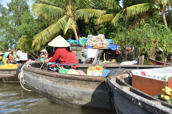 Die berühmten schwimmenden Märkte sind eine Welt für sich. Wir besuchen den Fruitmarket.