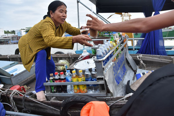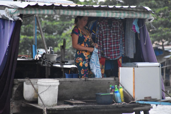 Die Menschen leben mit, von, in, an und auf dem Mekong. Mekongdelta, seine Menschen und den Götterglauben. Chauffiert werden wir von ihr: