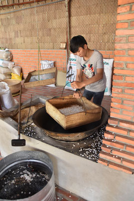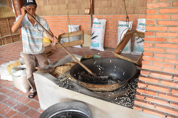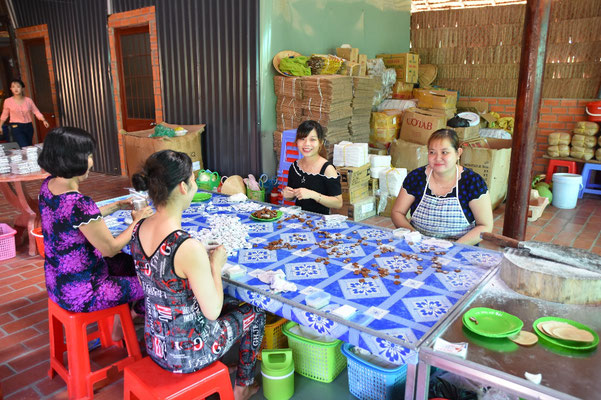 Dann zeigt uns Duc eine Süßigkeitenmanufaktur. Hier entstehen Kokosbonbons und vor allem Popreis: