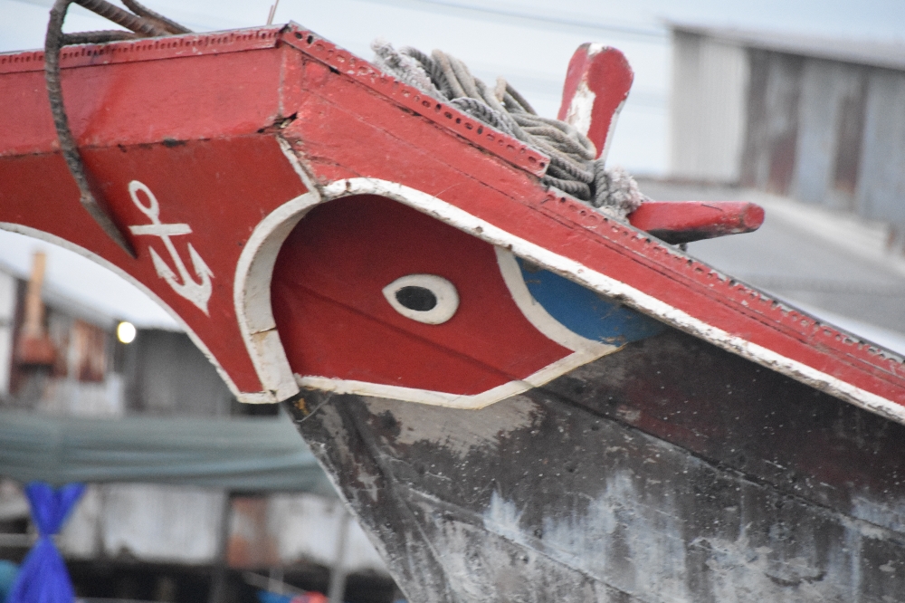 Die Boote haben Augen, damit sie ihren Besitzer vor den Monstern im Wasser schützen können. Besitzer und Boot gehören ganz eng zusammen. Wenn der Besitzer das (Haus-)Boot verlässt, um an Land zu leben, werden die Augen verschlossen.