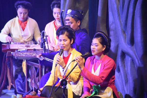 Also das war so: Im 15. Jahrhundert verjagte Le Loi die Chinesen mit einem magischen Schwert aus dem Hoan-Kiem-See in Hanoi. Dann erschien eine Schildkröte, die ihm das Schwert wieder wegnahm und es behalten wollte, bis Vietnam es wieder brauchen sollte. So wird es uns im Wasserpuppentheater erzählt: