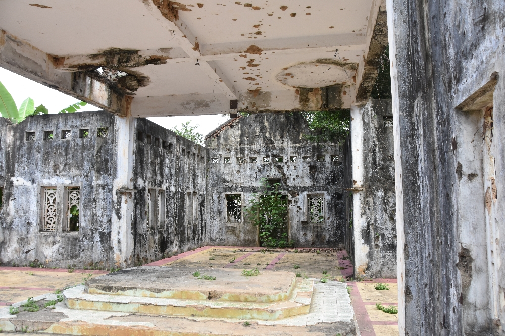 Er macht kein Geheimnis aus seiner Antipathie gegen die Kommunisten und will uns seine Sicht der Dinge erzählen. Wir fragen offen, was die Regierung von seinen Touren hält. Er schmunzelt: "Die Touren sind erlaubt. Was ich euch erzähle, wissen die ja nicht." Auch die Gräueltaten der Amerikaner schildert er sehr plastisch. Mit dem heutigen Vietnam ist er zufrieden. Er mag die geöffnete Grenze, das unzensierte Internet und die liberalisierte Witschaft - nur die Propaganda nervt ihn ziemlich. Die Tour selbst führt zunächst zu einer Kirchenruine in Quang Tri. Allein am Grenzstreifen zwischen Nord- und Südvietnam verloren hier Zehntausende ihr Leben. Die zerschossene Kirche ist eine stumme Zeugin. Hierhin waren die Menschen zum Beten gekommen.