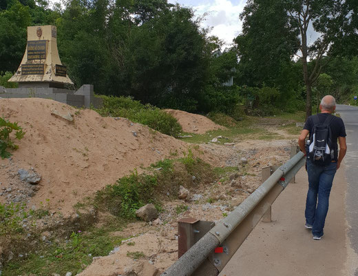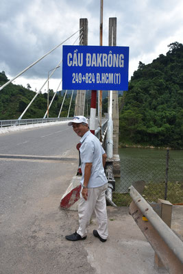 Der Ho-Chi-Minh-Pfad, an dieser Stelle ist heute eine Straße mit Brücke. Die KM-Angaben zeigen, wie weit der legendäre Versorgungsweg von hier nach Norden und nach Süden ging: