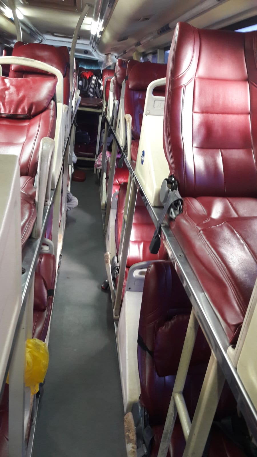 Deshalb fliegen wir nach Ho-Chi-Minh-Stadt, wenn der Sturm vorüber ist. Busfahren haben wir aufgrund unserer letzten vierstündigen Erfahrung mit Stockbettenbuskomfort und auf die Straße geworfenem Gepäck erst einmal ausgeschlossenen. Das Bild gibt weder Dreck noch Rollsargatmosphäre im "Obergeschoss" mit zugeklebten Fenstern authentisch wieder. Zudem wird der sitzliegend lebendig Begrabene durch unkontrollierbare Polarluft aus der Klimaanlage frisch gehalten.