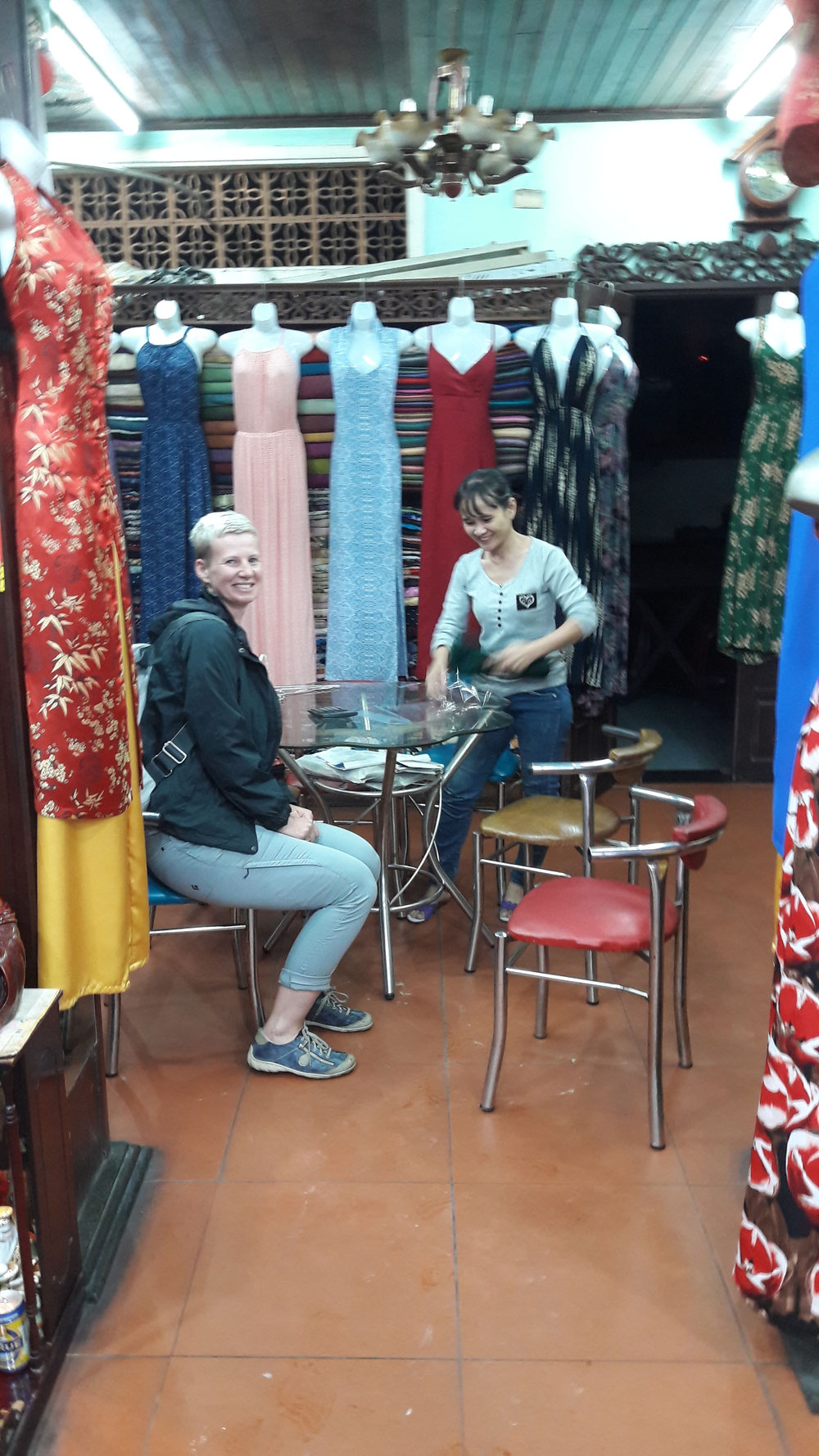 In der Schneiderstadt Hoi An können auch wir nicht widerstehen: Wir nutzen den verlängerten Aufenthalt und lassen uns was anfertigen. Ok, es sind nicht 7 - aber gleich 4 tapfere Schneider widmen sich unseren Köpermaßen und konferieren längere Zeit, wie man die gewünschten Modelle denn nun an diese aus asiatischer Sicht viel zu großen Körper bekommt.