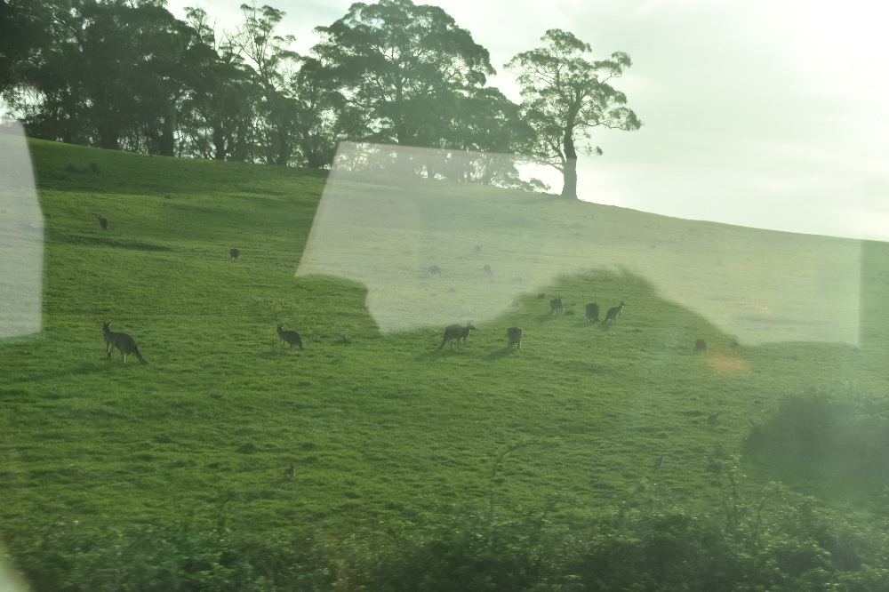 Melbourne - Sydney: knapp 1000 Kilometer in 11 Stunden 27 Minuten. Machmal hoppeln die Kängarus noch mit.