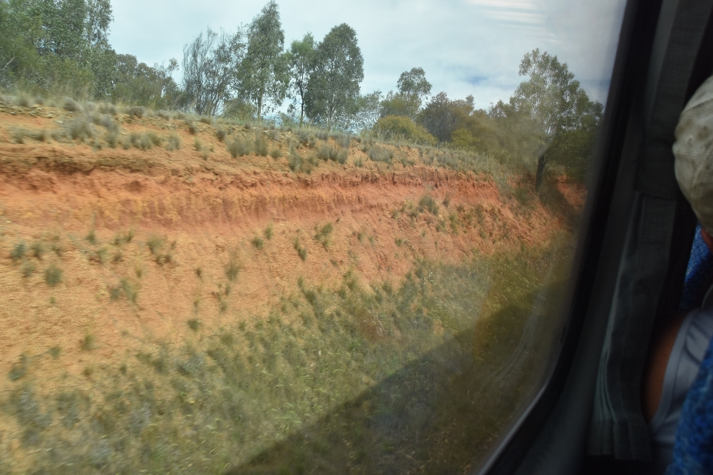 Die Landschaft meist unspektakulär wie im Mittelgebirge, wenn da nicht die vielen Eukalyptus-Bäume wären und eigentümliche Stationsnamen.