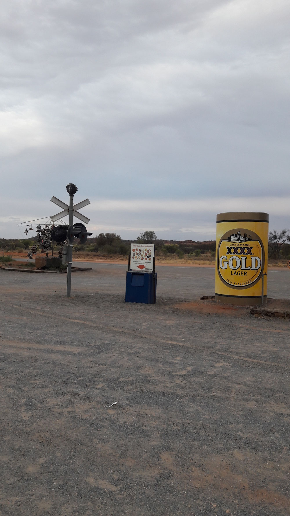 Heute und morgen wollen wir nichts erleben. Nach drei Wochen Erlebnis-Vielfalt-Hochgenuss haben wir einen Campingplatz angesteuert, in dessen Nähe es einfach gar nichts anzuschauen gibt. Null, nada. Passend dazu taucht ein naher Sandsturm hier alles in reizarmes Grau-Braun. Es wird interessant, wie es wirkt, dass nichts auf unserem Plan steht...wobei: Einen Termin gibt es doch: Um 18 Uhr ist happy hour im nahen Trucker-Pub. Wir melden uns dann wieder, wenn wir was erlebt haben...