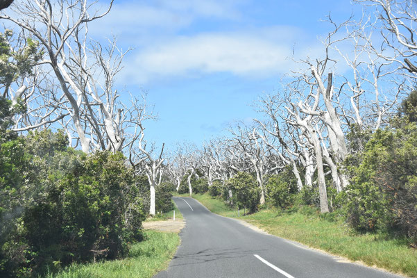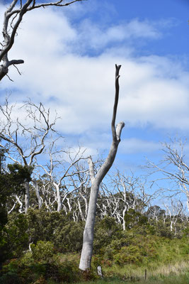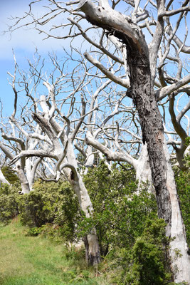 ...vorbei an Felsen, die aussehen wie tote Bäume, aber keine sind...