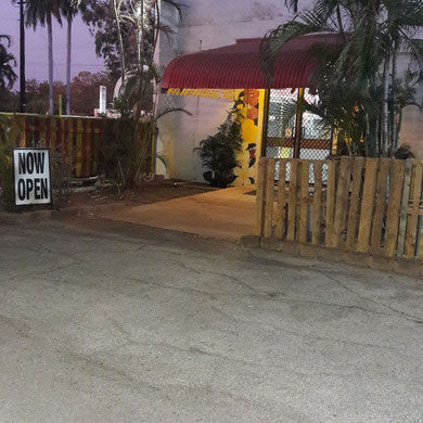 Das Restaurant (fast) am Ende der Welt: 160 qm, aber nur fünf Tische in originellem Ambiente: Wände von Hand bemalt, Neonbeleuchtung. Die Speisekarte verheißt Schnitzel (in dieser Schreibweise!), aber nur merkwürdige Getränke. Versuche, ein Bier zu bestellen. Geht nicht. Auch alles andere nicht. Soll mir im Supermarkt nebenan die Getränke meiner Wahl holen. Gesagt, getan: Mangels Alternativen kehre ich mit einem Sixpack Bier zum Schnitzel zurück. Hier ist nicht nur der Autoverkehr irgend...