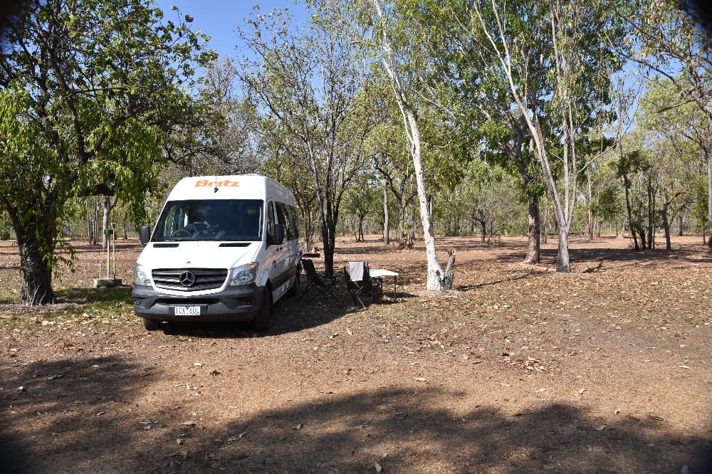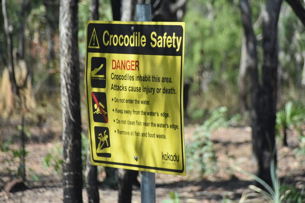Sie lauern überall - Krokodile. Sie zeigen sich jedoch eher selten. Im Morgengrauen konnten wir aus sicherer Entfernung schwimmende Augen im East-Alligator-River und ein kleineres Krokodil am Ufer sehen. Der Moment war so beeindruckend, dass wir das Foto glatt vergessen haben.