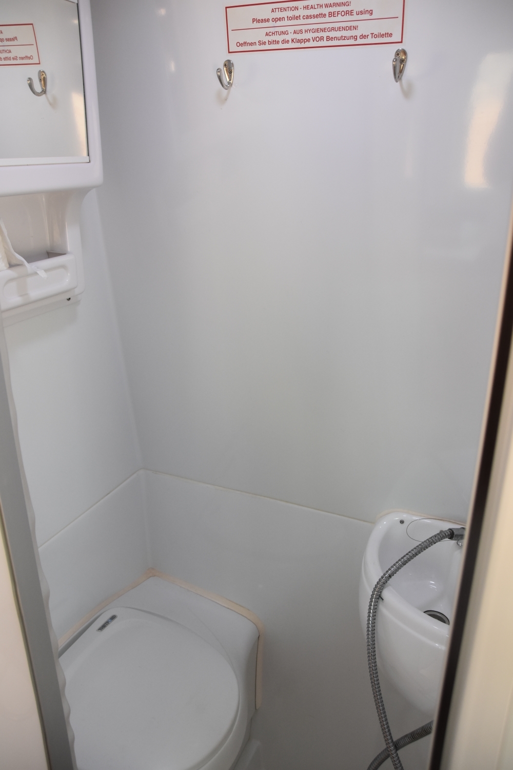 Heute stellen wir den Innenbereich unserer mobilen Suite vor. Links erkennt man die kompakte Cooking-Area mit Hitzemodul auf umweltfreundlicher Erdgasbasis. Darunter, unaufdringlich verborgen, die Kühl-Gefriereinheit im dynamischen Outdoormaß. Gegenüber ist die Tür zur Nasszelle erkennbar.