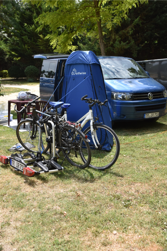 Natürlich ist uns eigentlich kein Weg zu steil, aber oben ist am Donnerstag immer ein Platzfest angesagt und wir mussten befürchten, keine Parkplätze für die Räder zu finden, sodass wir das Angebot des Barmannes des Campingplatzes angenommen haben, uns mit dem Auto mitzunehmen.