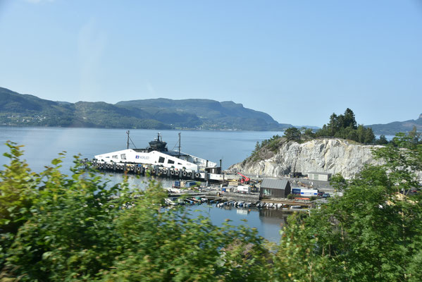 Da fährt man einfach so von Fjord zu Fjord und plötzlich endet die Straße im Wasser: Fährverkehr. Ganz selbstverständlich wird der gesamte Autoverkehr immer wieder per Schiff über die charakteristischen Meerarme gehievt. Der Stau schwimmt zart schaukelnd vor sich hin: Entschleunigung:
