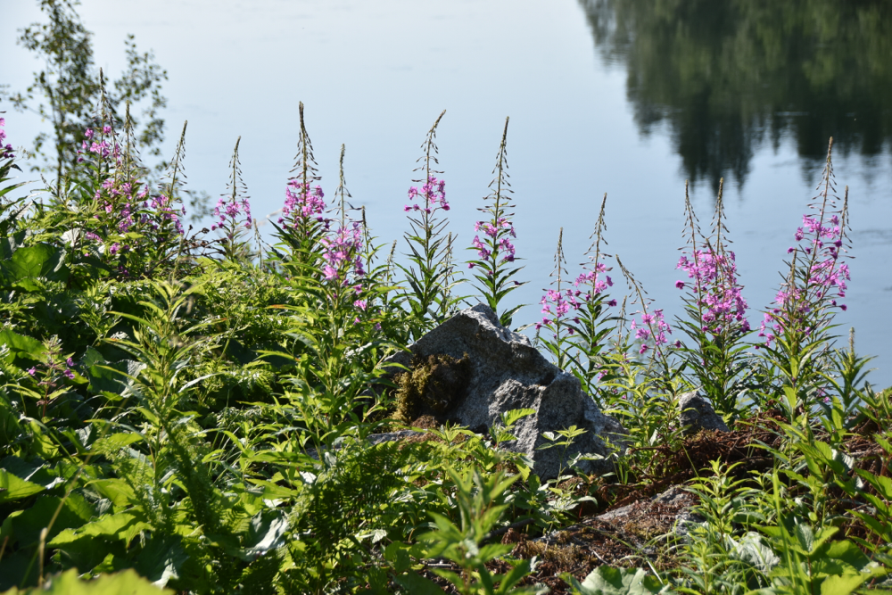 Elche suchen ist einfach. Wirklich schwer ist nur, welche zu finden. Dabei gibt es alle paar Kilometer sogar mehr oder weniger eindringliche Warnungen. Aber hier ist wohl ein Hinweis versteckt: Elche mögen wohl diese rosa Blümchen….